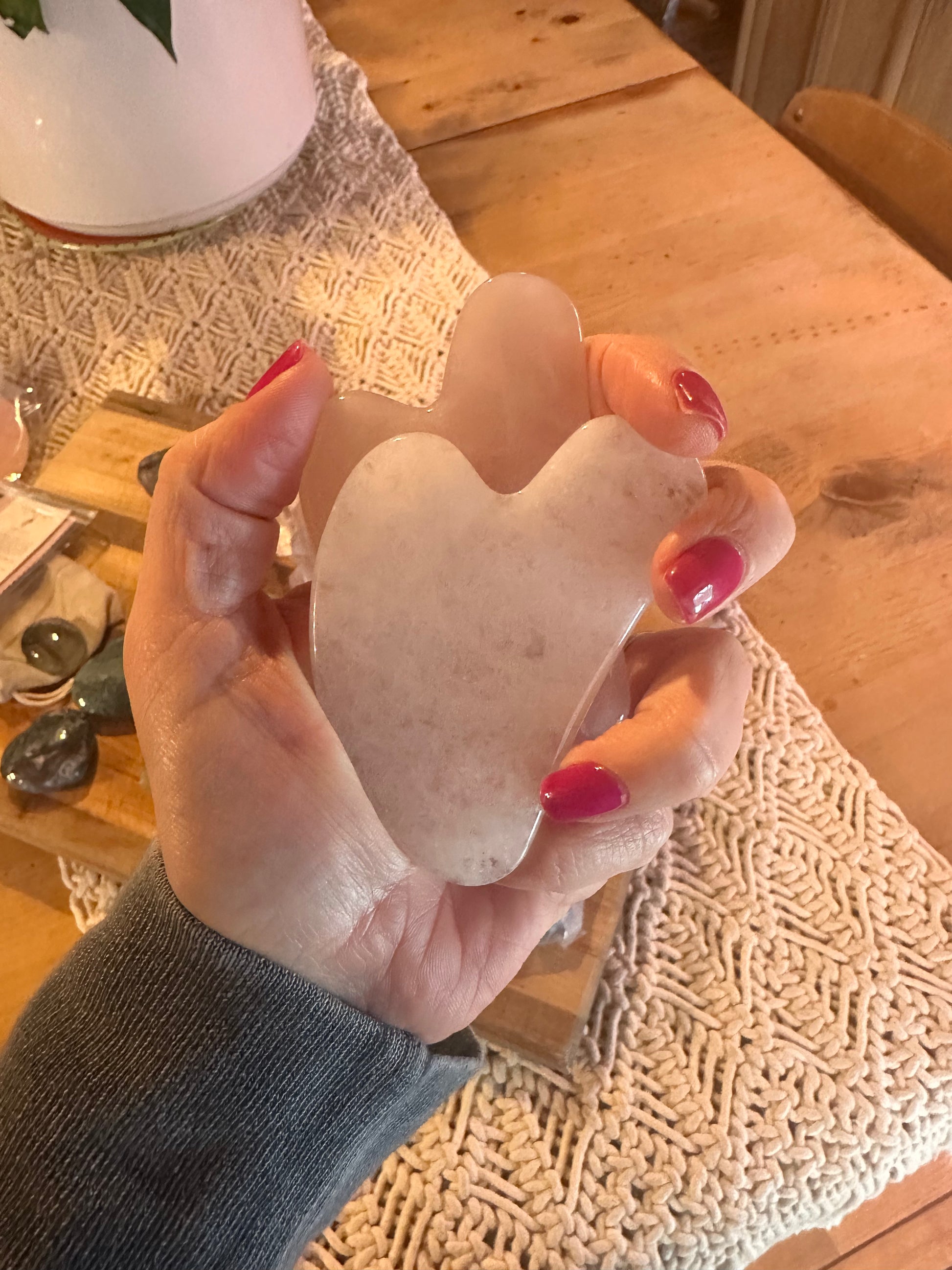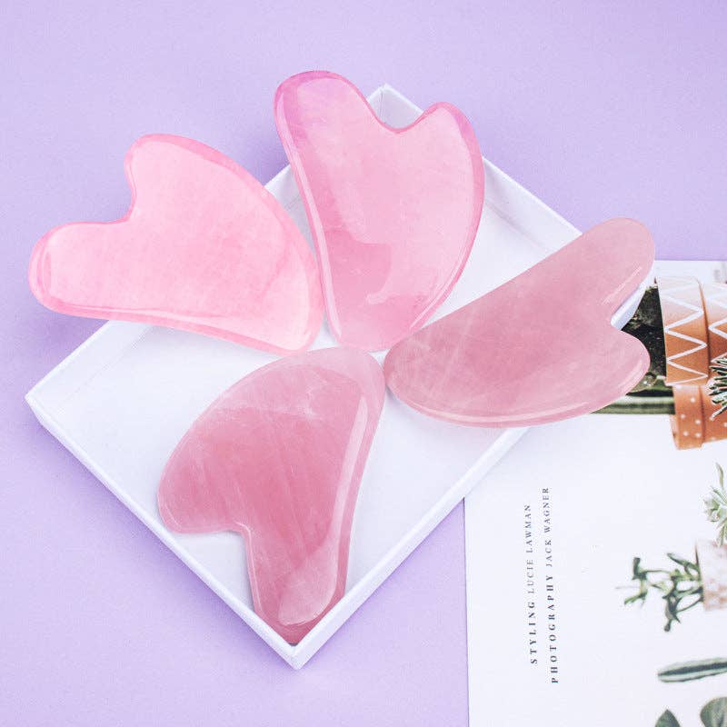 Embrace the ancient art of self-care with our exquisite collection of crystal gua sha boards, handcrafted from ethically sourced gemstones. Each board is meticulously polished to a smooth, cool finish, designed to glide effortlessly over your skin and unlock a world of rejuvenating benefits. Choose from 2 stunning crystals, each with its own unique energy: Rose Quartz: The stone of love and self-acceptance, rose quartz gua sha is known to promote a radiant complexion, reduce puffiness, and soothe the soul.
