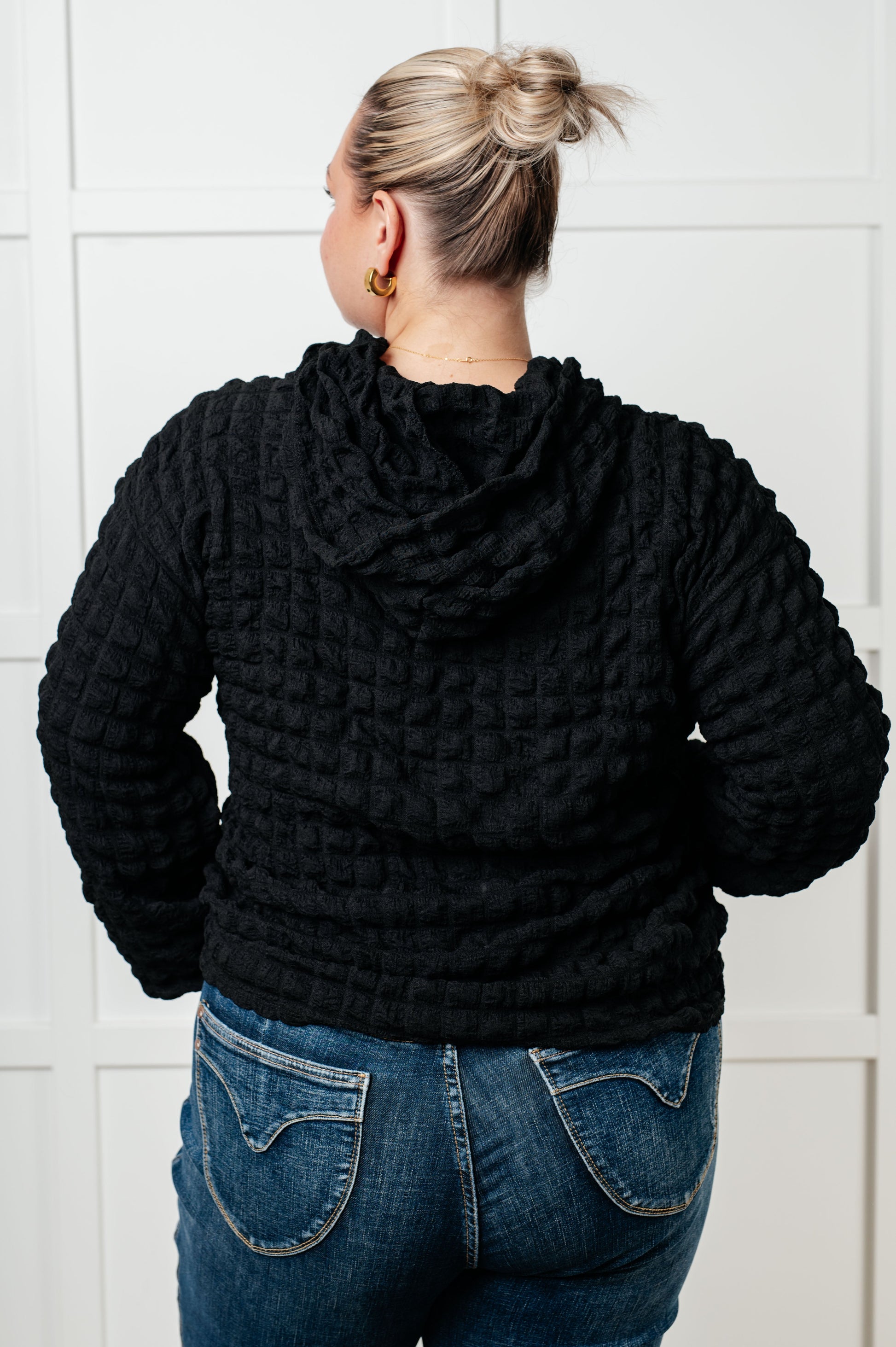 Stay cozy and express yourself with our Speak Your Thoughts Bubble Hoodie. Made from bubble knit fabric, this hoodie will keep you warm and stylish. The generous hood and relaxed fit provide comfort and allow you to freely speak your mind. Perfect for making a statement on chilly days.